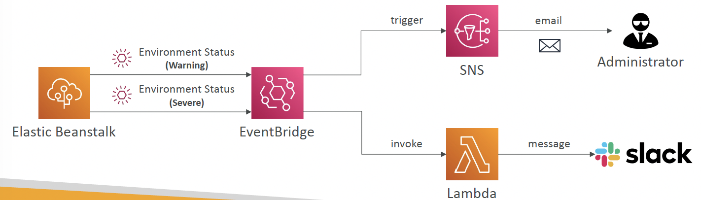 create rules in EventBridge to act to the following events